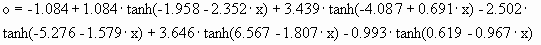 2 Hidden-Neuronen o= 0.046-0.870*tanh(-0.896+1.131*x1-0.247*x2)-0.967*tanh(-0.127-1.546*x1+0.363*x2) |