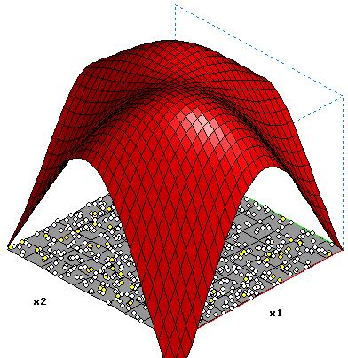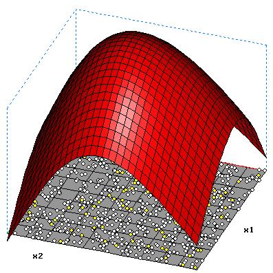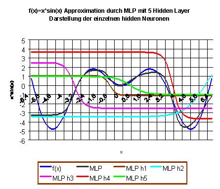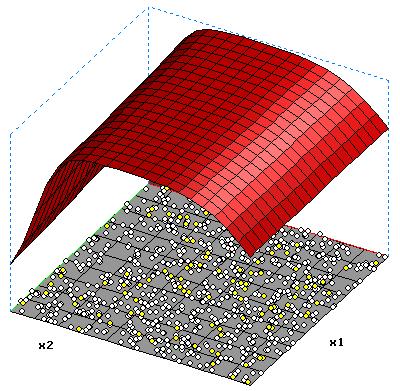 3 Hidden-Neuronen o= -2.081-1.446*tanh(-0.254-2.585*x1+0.497*x2)-1.244*tanh(-0.013+0.188*x1-2.654*x2)-1.713*tanh(-1.646+1.015*x1+0.855*x2) |